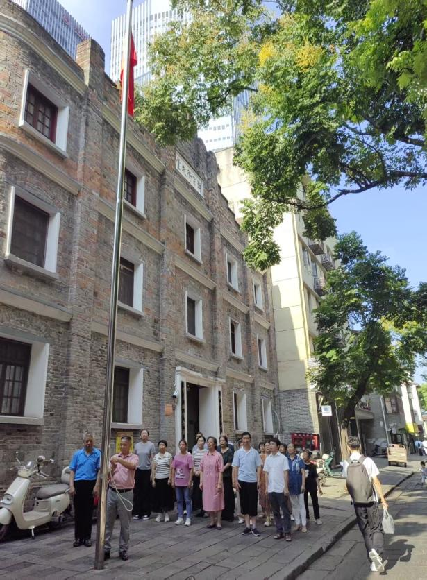 在国歌声中,五星红旗冉冉升起,升旗仪式庄严肃穆,仿佛能听到当年革命先辈为了国家的前途命运,奋勇抗争的呐喊。
