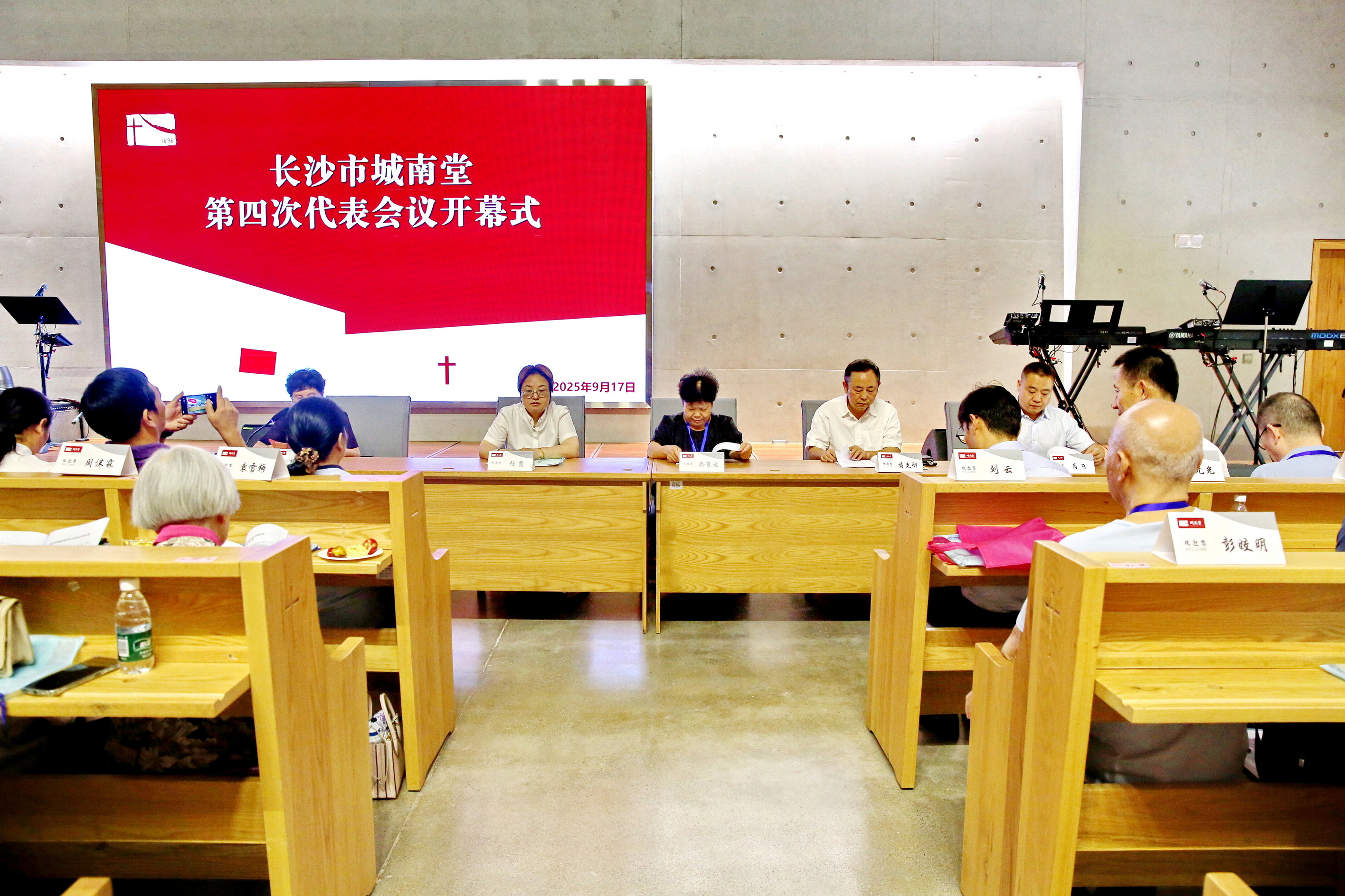 2025年9月17日,长沙市城南堂第四次代表会议顺利召开。130名信徒代表与20名特邀代表出席会议。天心区民族宗教事务局副局长高飞、市基督教两会班子成员应邀参会。